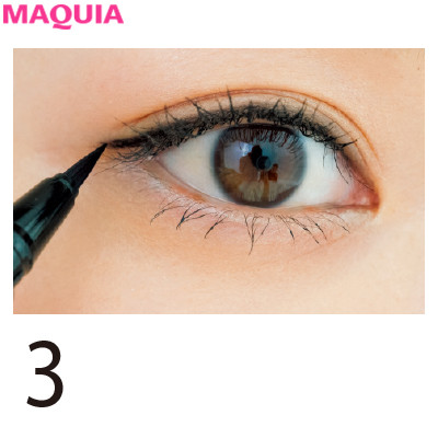 パンダ目が怖いのでまつ毛はノータッチ……は間違い。根元ギリギリからカーラーを挟むのが大事。自分の目のカーブに合ったカーラーでまつ毛をしっかりカールアップさせれば、マスカラが下まぶたにつく心配も軽減。