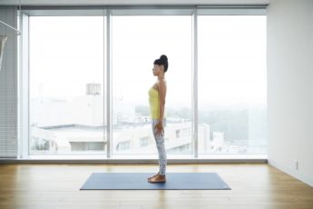 正しい体の使い方をすることから丁寧に行い、ポーズに入ったら体の中で伸び縮みしている部分に意識を向けてみましょう。そしてどんな時でもおだやかで規則正しい呼吸はお忘れなく! これはヨガをしている時だけではなく、日常生活で自分の心を見失わないために練習をしておくとよいことです。なぜなら、どんなシチュエーションでも自分の呼吸を忘れないことで、心に余裕を持つことができるから。さあ、プリッと上がったヒップと共に平常心をキープしていきましょう!