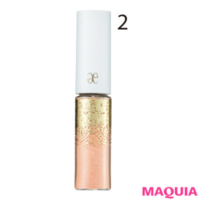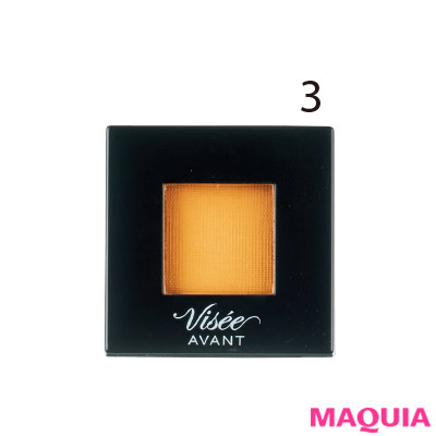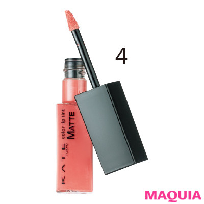 EYE アイホールの丸みに沿って2をのせて指先でトントンとのばし、下まぶた目尻1/3に3でアクセント。マスカラはブラウンを上下に。CHEEK 黒目の内側から楕円形になるよう幅広めに1を。チークと肌との境界線がなくなるまできちんとぼかす。LIP 4で輪郭を縁取り、内側は均一に塗ってツヤツヤに。
