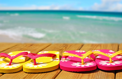 浴衣を着ているのに足元をよく見ると、ミュールやサンダル。