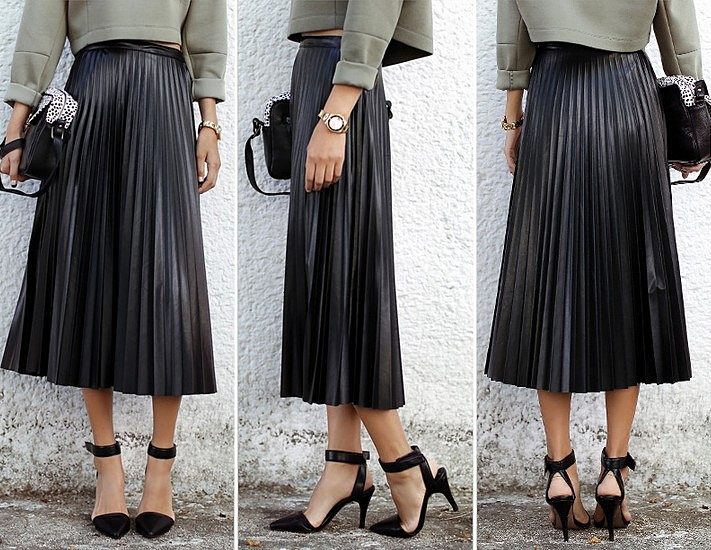 アコーディオンプリーツの端正なシルエットでエレガントに仕上げたスカート。