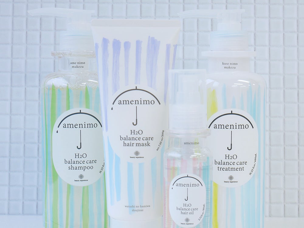 雨対策として生まれた「amenimo(アメニモ)」は雨の日でもうねりや広がりに負けない髪を作るヘアケアシリーズ。驚くことに日本人女性の約60%がクセ毛に悩んでいるんだとか。そのためクセ毛の悩みを解消すべく水分バランスを考えて作られていますよ。
