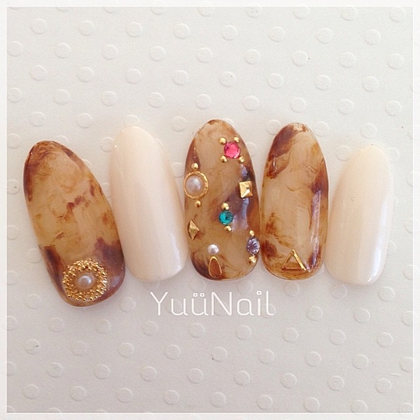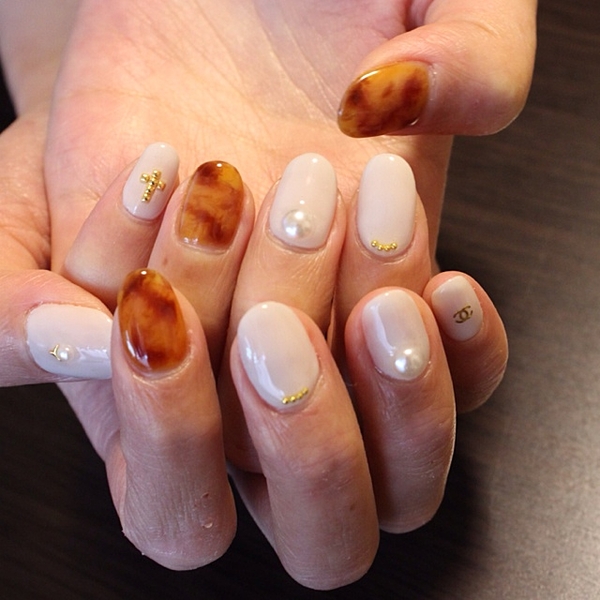 色んなデザインとマッチする!秋はやっぱりべっ甲ネイル♡