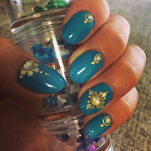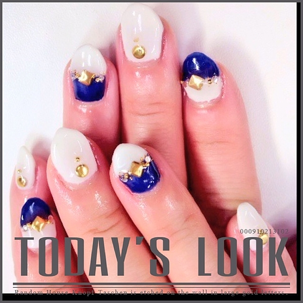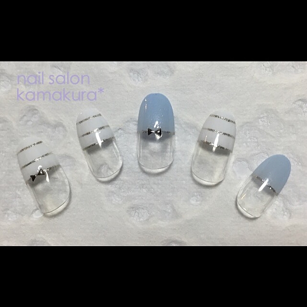 ブルーを1色塗りして、1本だけマステを使ってアクセント!