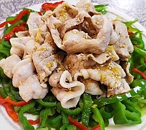 豚しゃぶに2種類のピーマンを加えたヘルシーレシピ。