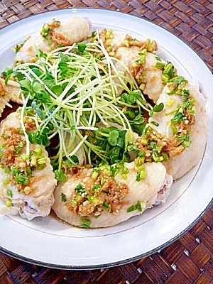 楽天レシピ:「ぷりぷり鶏手羽先の☆香味野菜タレがけ 」より