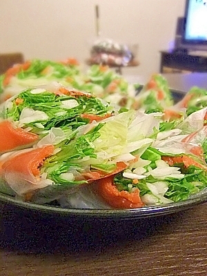 ■低カロリーが嬉しい★サーモンと香味野菜の生春巻き