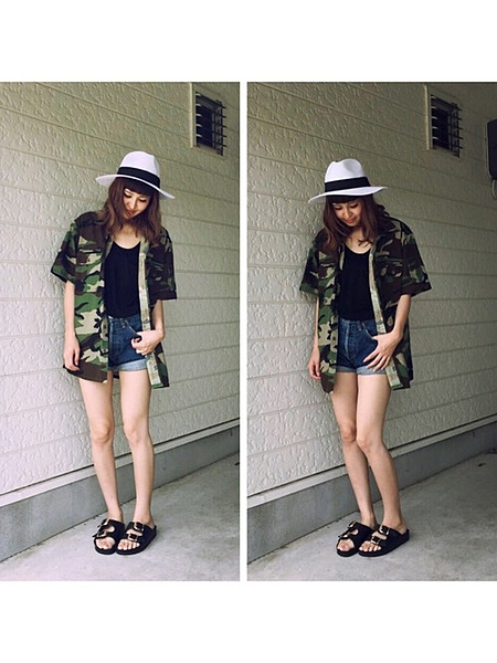 カモフラ柄と合わせることで白のハットが映える!