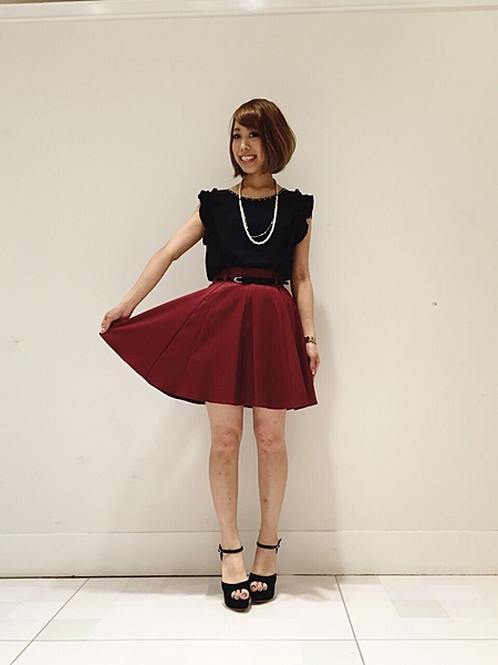 たっぷりのフレアスカートで赤を纏う♡