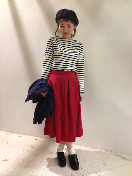 飾り気のないフラットな印象の”赤スカート”
