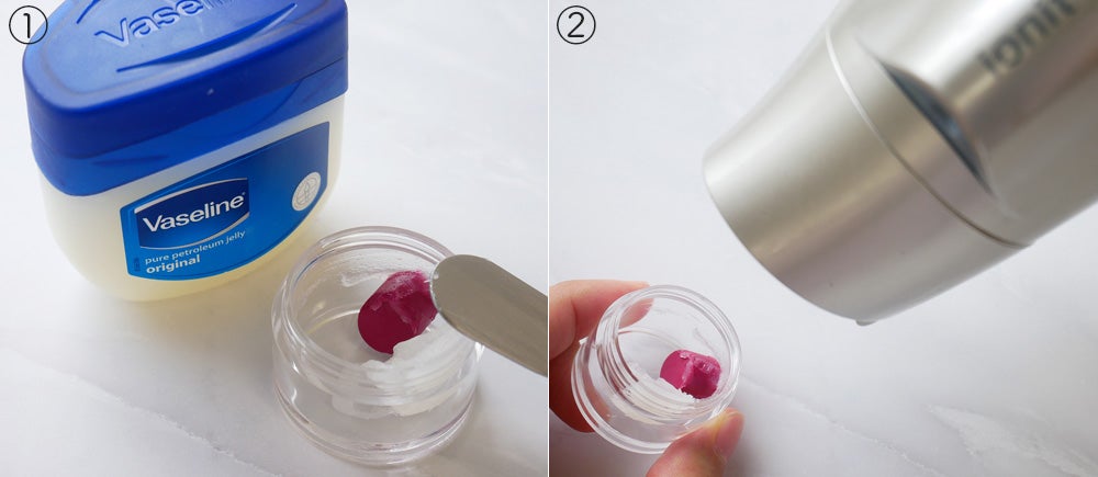 2つ目はヴァセリンと混ぜて、色付きリップを作っちゃう再利用法。この方法は、リップが割れてしまった場合などにもおすすめ。作り方の手順を紹介していきます。