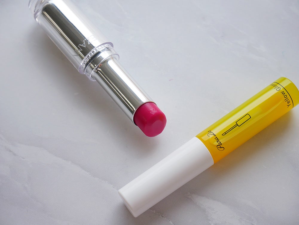 3つ目はニュアンスリップを上から重ねちゃう方法。「ニュアンスリップ(またはグロス)」とは、手持ちのリップの上に重ねて塗ることで、リップの色味・雰囲気を変化させることができるコスメです。今回はイエローを使用しましたが、ブルーやブラック…などカラー展開も幅広い。ブルーは透明感のある唇に、ブラックはキュッと引き締まったどこかクールな唇に変化させることができるみたい。
