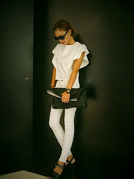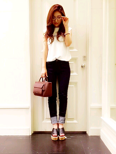 スキニーにピタっとしたトップスで女度アップ♡