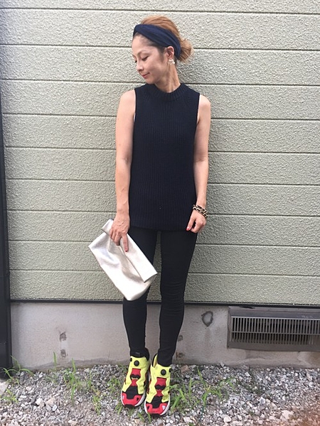 オールブラックもタイトめにすることで女っぽさアップ!