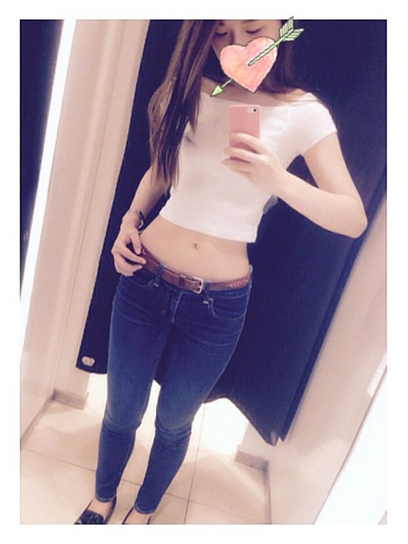 スキニーに短めトップスがいいかんじ!ヘソだしで夏っぽさもアップ。