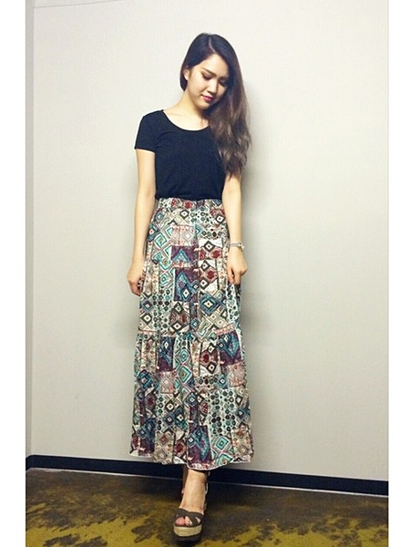 ロングスカートにタイトめトップスでバランスがいいかんじに♡