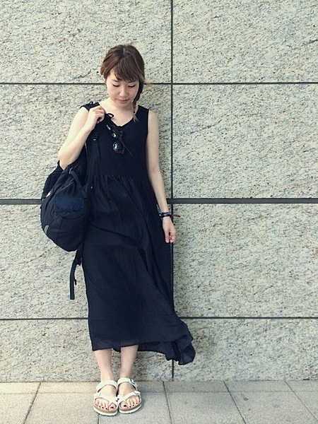 ブラックのワントーンワンピを