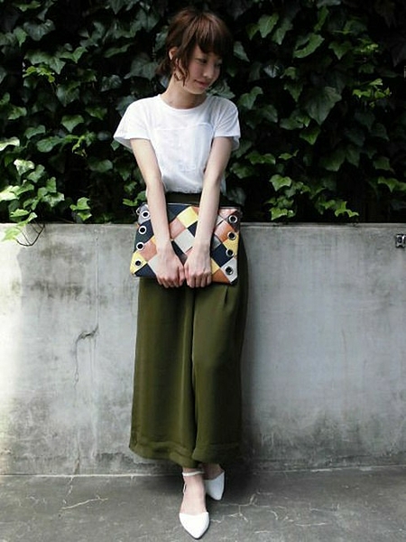 ホワイトスカートで足元のアクセントを
