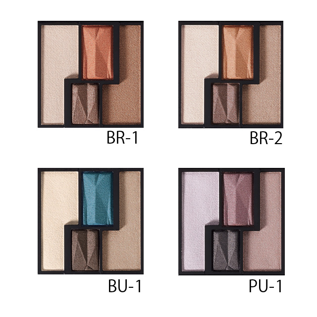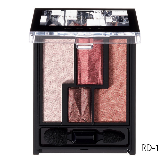 中央のくすみ色(下)をライン状にまぶた上~下1/3に引き、上からくすみ色(上)を幅広く重ね彫り深な眼差しに。RD-1はボルドー系。
