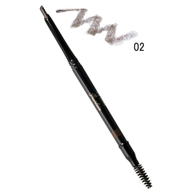 眉毛の隙間を埋めるように描けるなぎなたカットのアイブロウペンシル。肌との密着感を高めるセラミド入りパウダーを採用。02はダークブラウン。