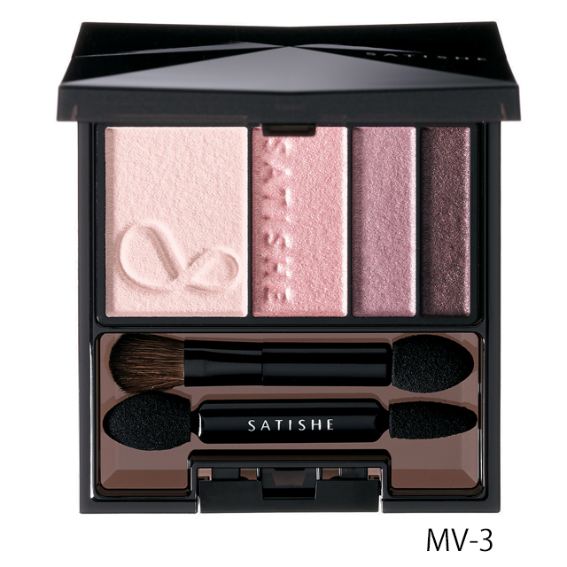 軽いつけ心地をかなえる、粉体に空気を含ませたエアリーヴェール処方を採用。MV-3はモーヴブラウンで締める、パープルグラデーション。