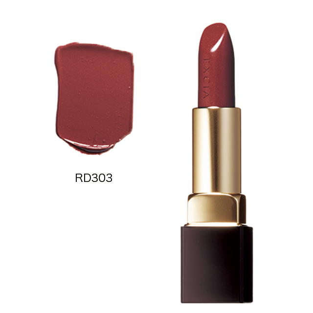 リップラインが際立つ鮮やかな発色とツヤを長時間キープ。ふっくらとした唇に。RD303は熟した果実のようなブラウニッシュレッド。