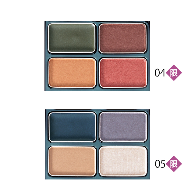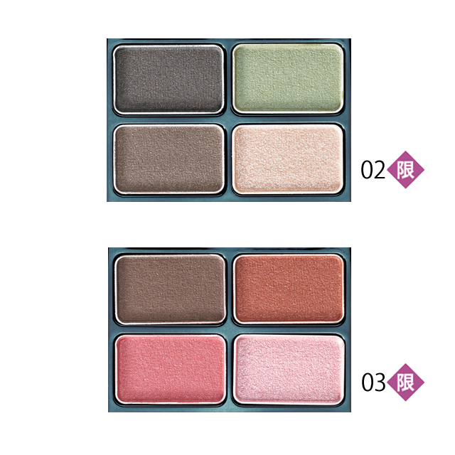 強くセクシーな眼差しをかなえる色合わせ。01は夜空のようなネイビー×イエロー、02はカーキ系、EX-01はフェミニンなモーヴ系。※EX-01のみ伊勢丹新宿店限定カラー