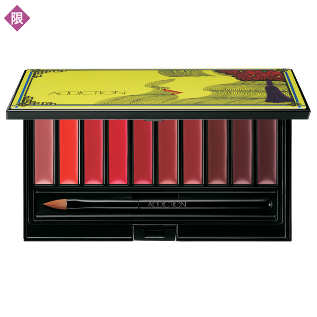 明るいマンダリンレッドやシアー発色のレッド、ダークレッドなど、全10色の赤がスレンダーなパレットに。リップブラシつき。