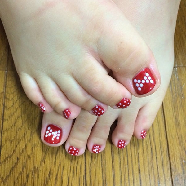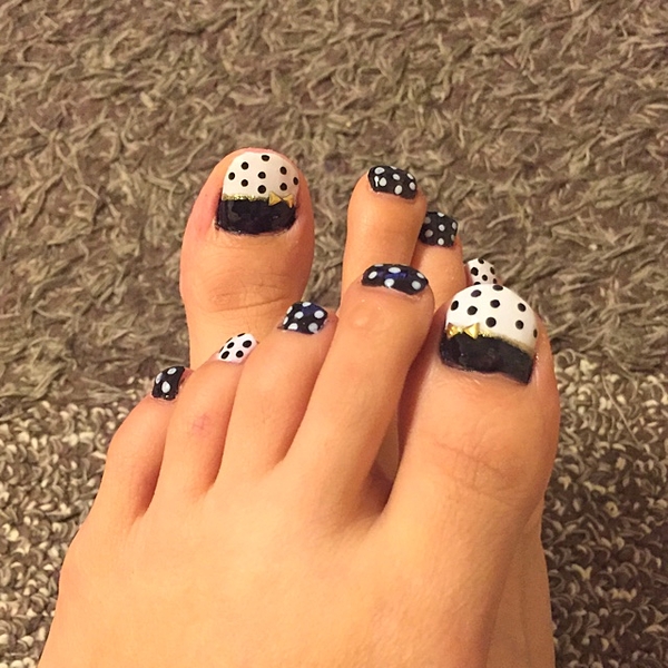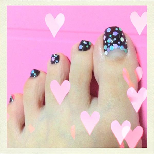 足にマニキュアぬったった(´∇`) 初ドット柄!うまくできたよ〜♡ 足やと、学校でもバレへんよね(´・∀・`) http://t.co/CKZGvebMdx