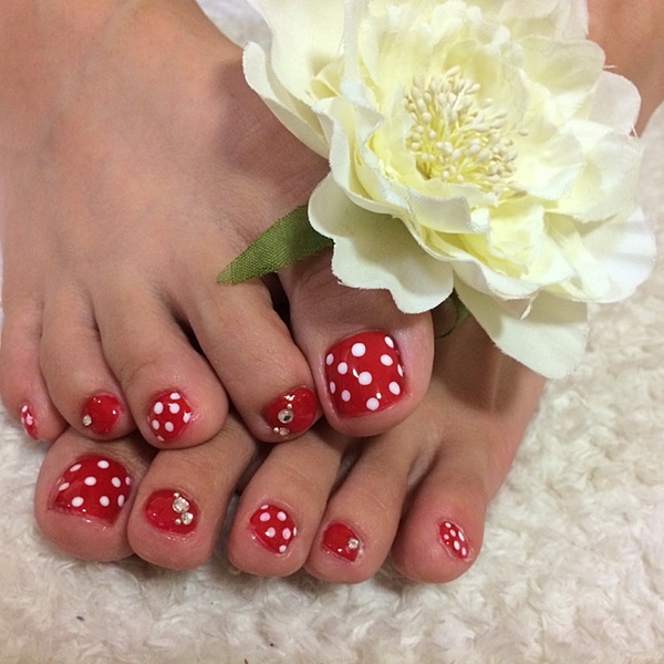 フットジェルはドットのラブリーネイルに♪足元だってかわいくしなくちゃ♡