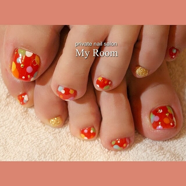 フットで活躍するレッドを主体にしたドットデザイン☆