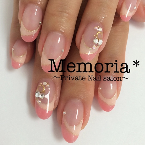 シンプルネイルに、いつもはクリアストーンをのせるところをピンクに変えてみて・・♡
