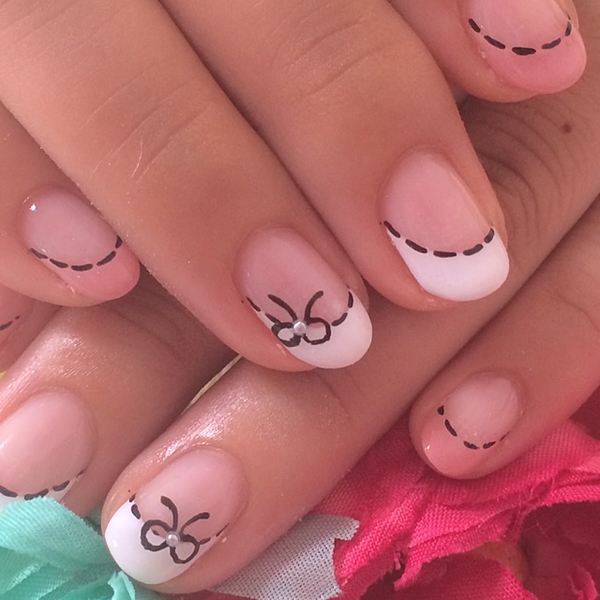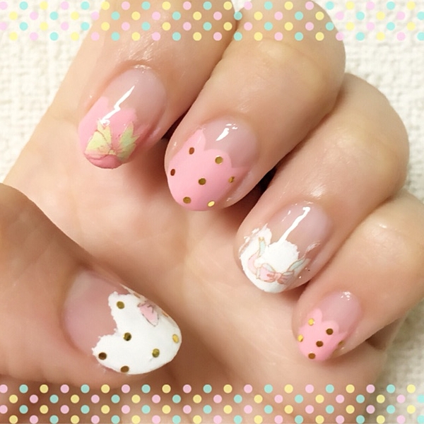ミルキーピンクでフレンチにして、ブラックのドットをプラス♪