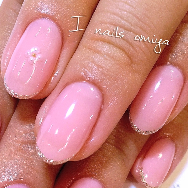 ピンクの1色塗りで上品にまとめて、根元に小さめパールをオン♡