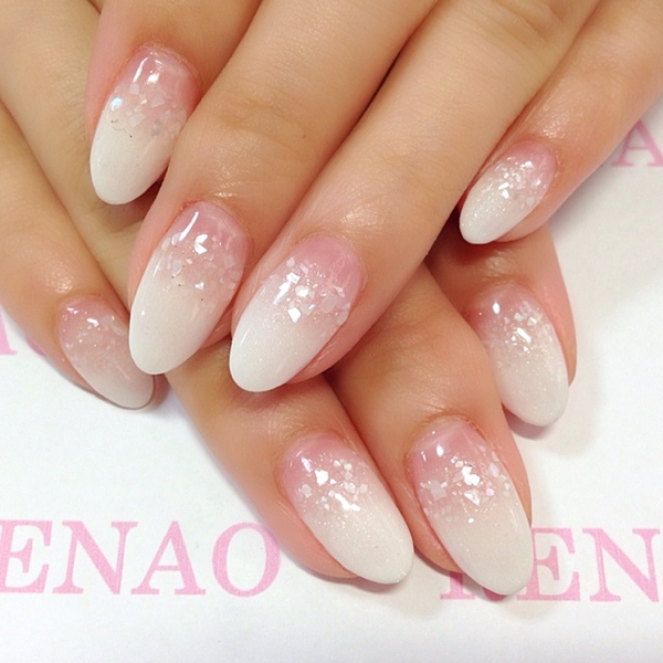 ピンクやベージュは肌なじみがいいので、ホワイトを使うと華やかな印象になります♪