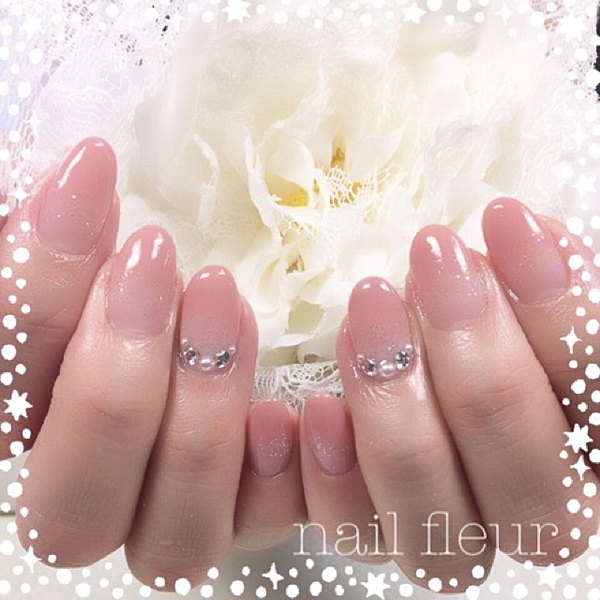 ピンクとホワイトで深めのグラデーション♡根元に並べたストーンが素敵・・♪