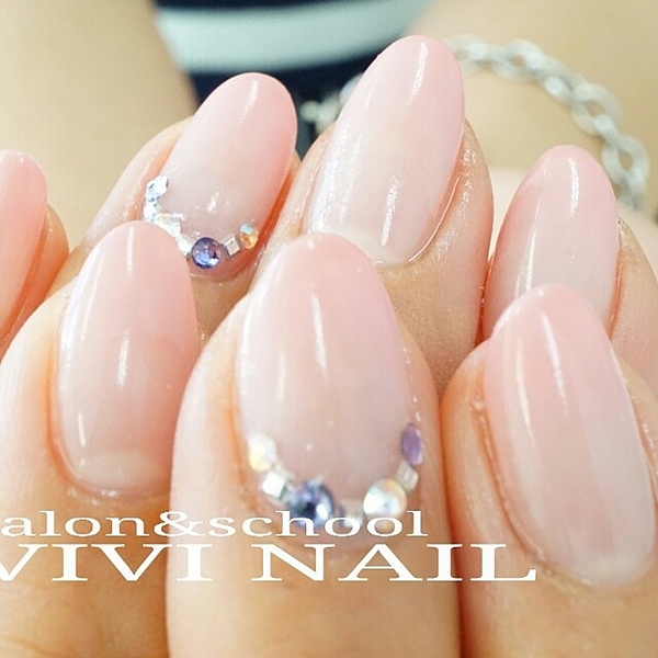1本だけラメラインを入れてストーンをのせれば、華奢なアクセみたいで可愛い♡