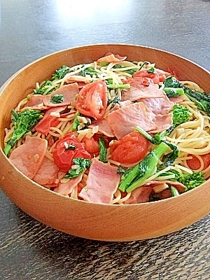 ■菜の花とフルーツトマトで★春の彩りパスタ