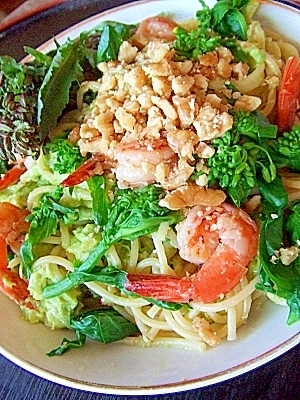 春のパスタ*エビとアボカドと菜の花のパスタ