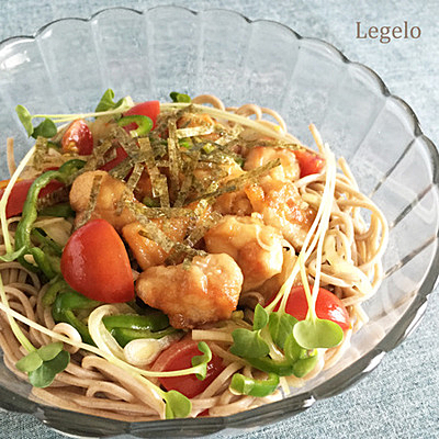 ■鶏肉トマトたまねぎピーマンの南蛮漬けそば