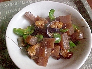 楽天レシピ:「● こんにゃく+なす+ピーマンの甘味噌炒め ● 」より
