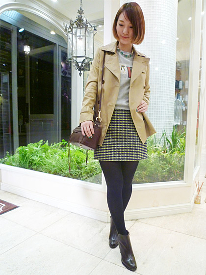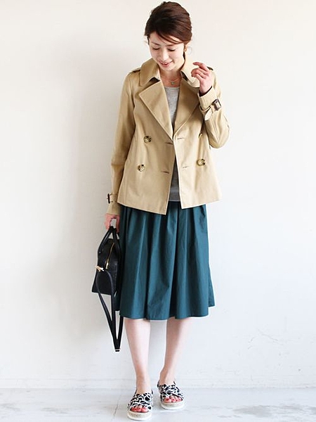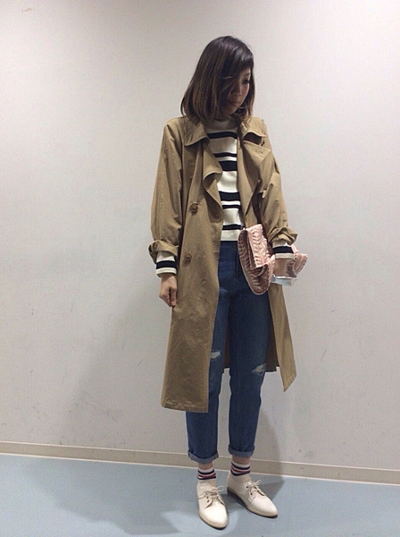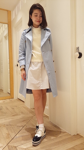 トレンチコートはベージュが多いから、時にはブルーを使ってみるのも良いかも!
