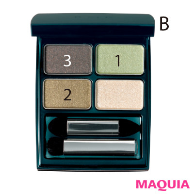 「スッキリと端正な顔立ちのため、メイクで遊んでも派手になりすぎず、品の良さをキープできるのが特徴。カラーライナーや赤リップなど、パンチの効いたアイテムでもサラリとつけこなせ、洒落た雰囲気に。眉は基本的にやや太めに描くと、顔が締まってバランスが良くなります」