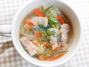 楽天レシピ:「簡単ヘルシー♪野菜たっぷり春雨スープ*^^* 」より