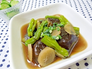 楽天レシピ:「ひんやり♪茄子としし唐の煮びたし 」より