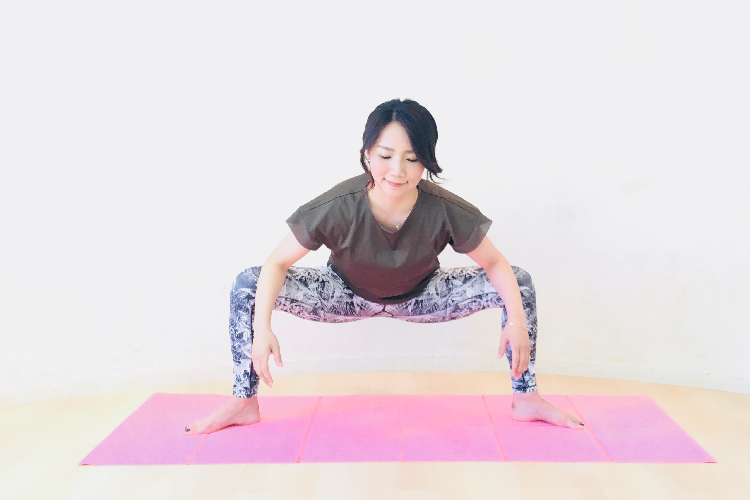 お尻をしっかりと後ろへ突き出しながら胴体を低くし、ひじでひざを押しながら、腰を前方に伸ばすようにするのがポイントとなります。慣れてくるととっても気持ちがいいポーズです。姿勢の悪さが気になる時も、行ってみてくださいね!