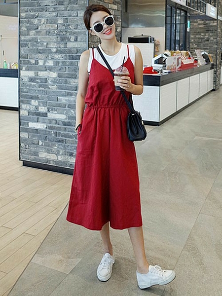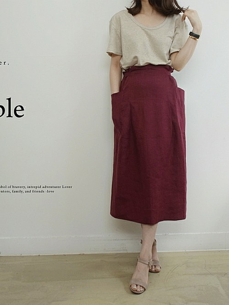 すとんと落ちるシルエットがえんじの大人っぽさを引き立てるスカート。