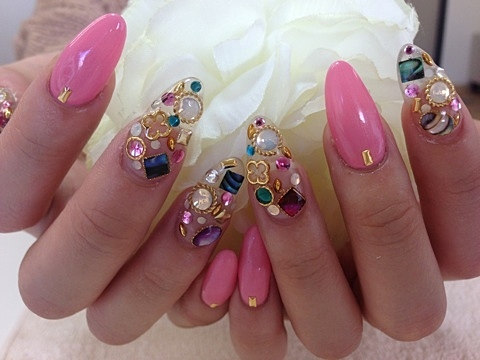 存在感ありまくり。宝石ネイル♡