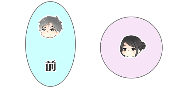 画像のように、女性はパーソナルスペースが前後左右一定に比べ男性は前後のパーソナルスペースが広いんです。