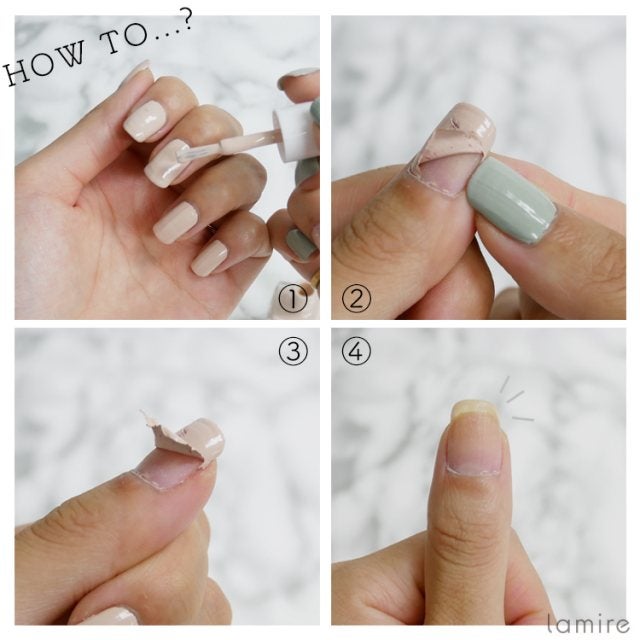 ②、③の画像の通り、剥がすときは爪の根元の方から少し押し上げるだけで簡単に剥がれます。ちなみに、あとで剥がしやすくするためには重ね塗りすることがポイントみたい。